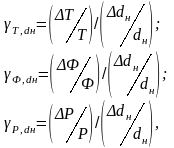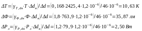 Δ Т, Δ Ф, Δ Рл – определяемое отклонение значений температуры тела накала, светового потока лампы, мощности лампы в следствии отклонения диаметра нити Δdн.