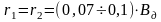Радиусы закругления в калибрах принимаются в соответствии с рекомендованными значениями [1, стр. 34]:
