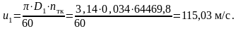 Діаметр колеса на виході……………………………………….D2 = 0,07 м