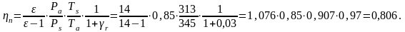 ККД компресора по ГОСТ 9658-81………………………………nк = 0,68