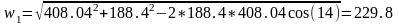 Из треугольника находят относительную скорость входа пара на рабочую решетку