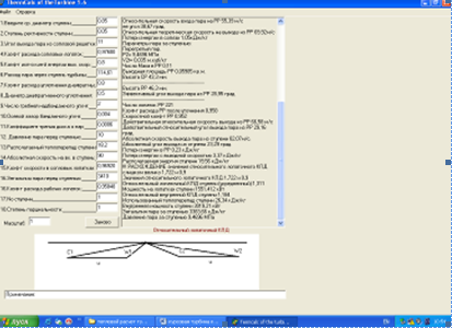 Детальный расчет промежуточных ступеней необходимо выполнять на ЭВМ, программе TermCalc of the Turbine 1.6. И рассчитаем эти параметры: расход пара D, параметры пара перед ступенью: давление Р0 , МПа; температура (сухость) t0(x0), энтальпия i0 , кинетическая энергия на входе в ступень