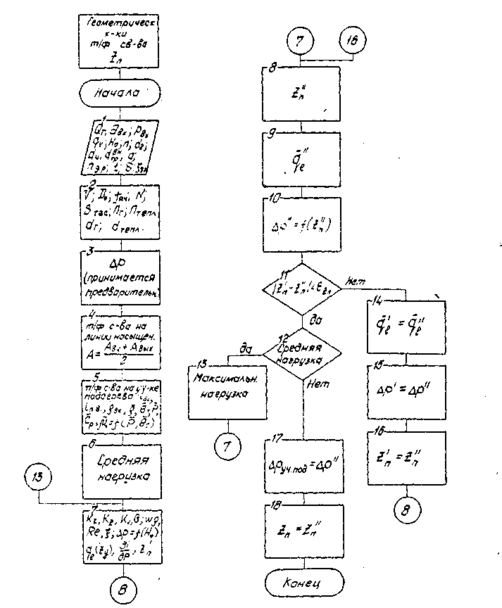 Определение координаты точки закипания, как и весь тепло-гидравлический расчет, выполняется для одного канала: со средней тепловой нагрузкой. При выполнении расчета канал расчленяется на участки длиной ДЖ. Длина участка, как правило, принимается равной расстоянию между дистанционирующими решетками - рисунок 1.3. Расчетный сечениям присваиваются числовые значения координаты 2. При этом при расчете реактора РБМК в отличие от изложенного ранее для реактора ВВЭР в качестве координаты Z=0 принимают сечение на входе в канал. Вычислительный процесс по определении координаты точки закипания носит итерационный характер. Схема алгоритма этой процедуры изображена на рисунке 1.4.