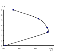 Рисунок 1.14- График изминения температуры в графитовой кладке по высоте канала