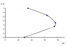 Таблица 1.3 – Распределение коэффициента теплоотдачи по высоте канала