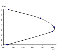Рисунок 1.12- График изминения наружной температуры топливного сердечника по высоте канала
