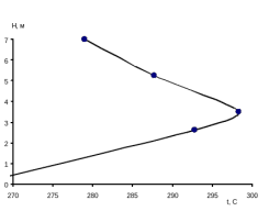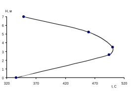 Таблица 1.7- Распределение температуры в центре топливного сердечника по высоте канала
