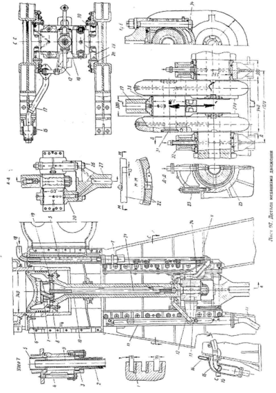 Мотылевые подшипники 35 диаметром 380 мм имеют ширину рабочей поверхности у верхней половины 175 мм. Нижние половины головных подшипников имеют на рабочих поверхностях продольные и поперечную смазочные канавки.