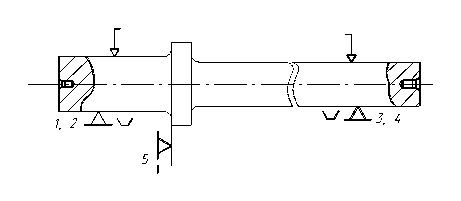 На всіх стадіях обробки заготівля встановлюється в центрах, тому погрішність базування дорівнює нулю.
