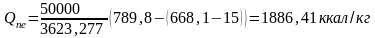 Находим при Pпе=40 кгс/см2 и tпе=440oC iпе=789,8 ккал/кг; при Pб=45 кгс/см2 и температуре насыщения iн=668,1 ккал/кг; iпо=15 ккал/кг;