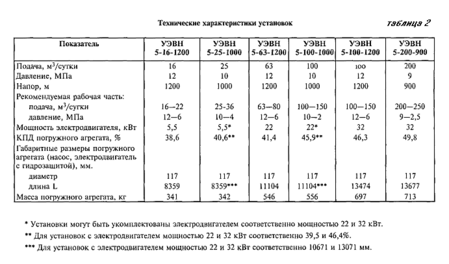 В приведенных ниже табл. 2 и 3 представлены технические характеристики установок электропогружных винтовых насосов и самих насосов.