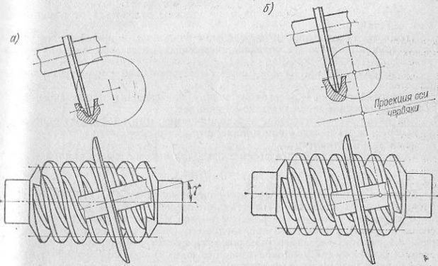 В индивидуальном производстве наиболее технологичны червяки вида ZA, обработка которых на токарно-винторезных станках практически ничем не отличается от обработки трапецеидальных резьб. Угол подъема винтовой линии червяка не должен превышать