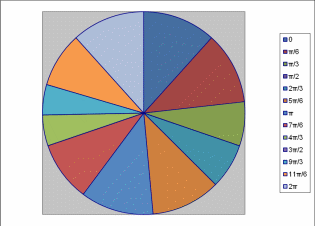 | φ, рад | 0 | π/6 | π/3 | π/2 | 2π/3 | 5π/6 | π | 7π/6 | 4π/3 | 3π/2 | 9π/3 | 11π/6 | 2π |