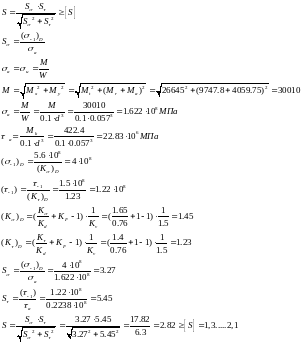 Определяем расчётный коэффициент запаса прочности S в опасном сечении и сравниваем его с допускаемым значением(1,3….2.1)