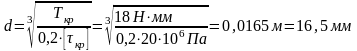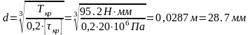 Диаметр вала определим в зависимости от крутящего момента и напряжений вала при кручении