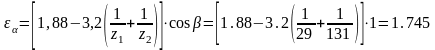 – коэффициент перекрытия зубьев в зацеплении