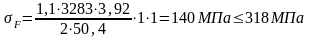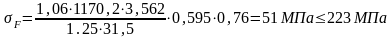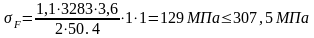 Рабочие напряжения изгиба для колеса прямозубой передачи