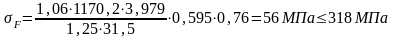 Рабочие напряжения изгиба для колеса косозубой передачи