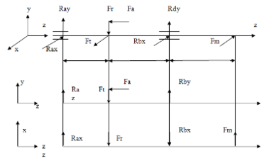 ∑Mв = 0 Ft*24,5+Fm*160,3+Rax*84,8 = 0 Rax =-530,8H