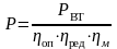 Потужність, наведена до вала привода PВТ із урахуванням втрат у контакті зірочок і шарнірів ланцюга, тертя в її шарнірах і втрат у підшипниках, кВт