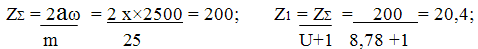 принимаем Z1 = 20; Z2 = ZΣ – Z1 = 200 - 20 = 180;