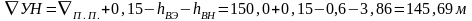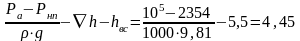 h – кавитационный запас, м (определяется по характеристикам насоса),