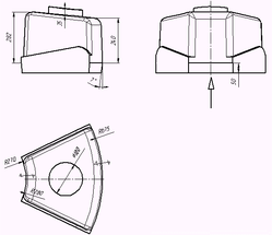 Величина стержневых знаков, как для горизонтальных, так и для вертикальных стержней назначается в соответствии с ГОСТ 3212-92 в зависимости от габаритных размеров стержня, характера литейной формы (сухая, сырая, с химическим твердением, вместе с оснасткой и др.) и от размера в сечении знака стержня.