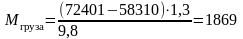 Исходя из того, что Fт< ΣFвсп. видно, что необходима установка груза. Масса груза находится по формуле