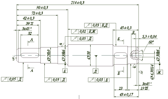 обеспечить симметричность боковых поверхностей шпоночных пазов относительно оси вала, в пределах 0,1 мкм;