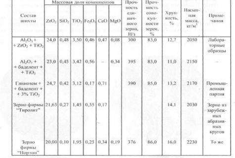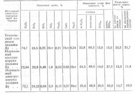 Химический и фазовый состав циркониевого электрокорунда и разрушаемость шлифзерна.