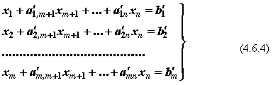 Назначим первые m переменных (x1, x2, …, xm) в качестве основных. Тогда систему (4.6.4) можно решить относительно x1, x2, …, xm, если определитель m-го порядка, составленный из коэффициентов при переменных x1, x2, …, xm не равен нулю.