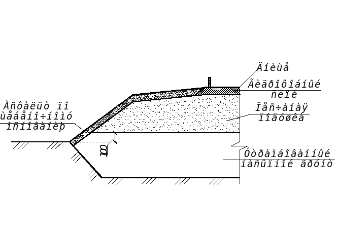 Днище располагается на кольцевых фундаментах из сборных железобетонных плит шириной 1,5 м и толщиной 0,5 м. В центре кольцевого фундамента – песчаная подушка.
