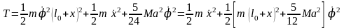 Визначимо кінетичну енергію системи. Вона буде складатися з кінетичних енергій трикутника й кульки: