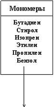 Получение каучуков, их модификации. Бутадиен-стирольные каучуки синтезируют по непрерывной схеме в батарее последовательно соединенных реакторов (мономеры и др. компоненты реакционной смеси подают в первый реактор). Эмульсионные каучуки получают радикальной сополимеризацией при 5 или 50°С (соотв. низкотемпературные, или "холодные", и высокотемпературные, или "горячие", каучуки). При синтезе "горячих" каучуков инициатором служит K2S2O8, при синтезе "холодных" - окислительно-восстановительная система, например - содержащая гидропероксид циклогексилизопропилбензола, соль Fe2+, этилендиаминтетраацетат Na (трилон Б), Na-соль формальдегидсульфокислоты (ронгалит). В кач-ве эмульгатора применяют мыла высших жирных кислот или кислот канифоли. Молярную массу сополимеров регулируют при помощи меркаптанов, например - трет-додецилмеркаптана. Степень превращения мономеров обычно 60-70%, продолжительность процесса 10-12 ч. После обрыва полимеризации (для этого используют диметилдитиокарбамат Na), отгонки непрореагировавших мономеров и введения в латекс водной дисперсии стабилизатора каучук коагулируют, промывают водой и сушат. Товарные формы бутадиен-стирольных каучуков - брикеты и смотанная в рулоны лента.
