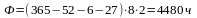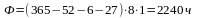 Ф=[365-(Двх + Дпр + Дп)]*tс*z,