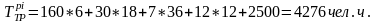 | Годовая трудоемкость, Ттр pi | 4276 | 5108 | 2418,67 | 11737,74 | 1961,333 | 1436,667 | 56,85 | 3446,89 |