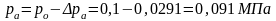 Давление окружающей среды ро = 0,1 МПа