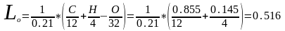 - действительное количество воздуха, необходимое для сгорания 1кг воздуха.