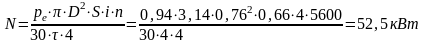 τ = 4 - тактность двигателя;
