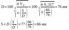 Окончательно принимаем: S = 66мм, D = 76мм.