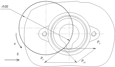 Коефіцієнт К0, що представляє собою гарантований коефіцієнт запасу закріплення, для всіх випадків слід брати рівним 1,5. Коефіцієнт К1 враховує збільшення сили різання через випадкові нерівності на заготовках (К1 = 1). Коефіцієнт К2 враховує збільшення сил різання внаслідок затуплення інструмента (К2 = 1,15).