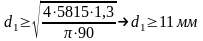 потрібний внутрішній діаметр різі визначаємо з виразу: