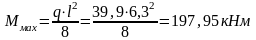 Максимальный изгибающий момент в балке от расчетной нагрузки: