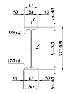 Окончательно принимаем: верхний лист - 135 х 4 мм Аус.в = 5,4·10-2 м2;