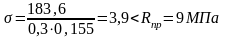 Напряжение на площадке в месте контакта балки настила и стены не превышает призменной прочности бетона, соответственно условие прочности выполнено.