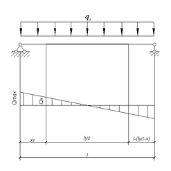 Поперечная сила Q1x определяется для сечения балки в месте обрыва усиления на расстоянии х от опоры: