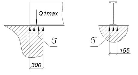 В данной курсовой работе нагрузка от перекрытия передается на несущие стены через сравнительно небольшую площадку, размеры которой определяются глубиной заделки балки и шириной нижнего пояса. Возникающие при этом напряжения на площадке контакта балки настила и стены ограничиваются прочностью материала стены. Материал стены в месте контакта - бетон класса Б20 Rпр=0,9 кН/см2=9MПа - призменная прочность бетона. Напряжение в бетоне от нагрузки принимаем равномерно распределенным по всей площадке.