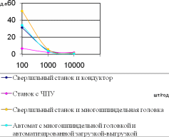 соответственно). Таким образом, время вносит более весомый вклад в себестоимость, по сравнению с ценой оборудования. Использование сверлильного станка автомата при большой программе выпуска более выгодно, чем простого станка, несмотря на то, что обычный сверлильный станок намного дешевле автомата.