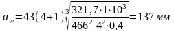 αW =( d1 + d2 )/2 =140 мм (2.14)