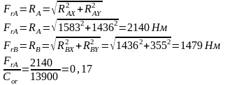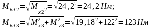 Определяем суммарный изгибающий момент в сечении вала по формуле
